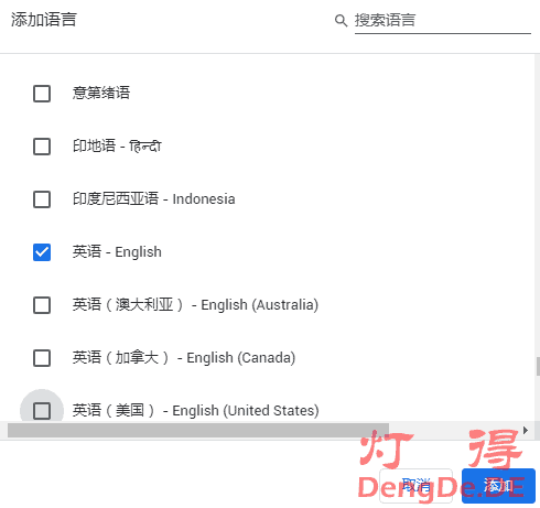 添加好之后,点击语言旁边的“三竖点”图标,勾选“以这种语言显示 Google Chrome”,设置为以“英语”显示 Google Chrome 浏览器界面。